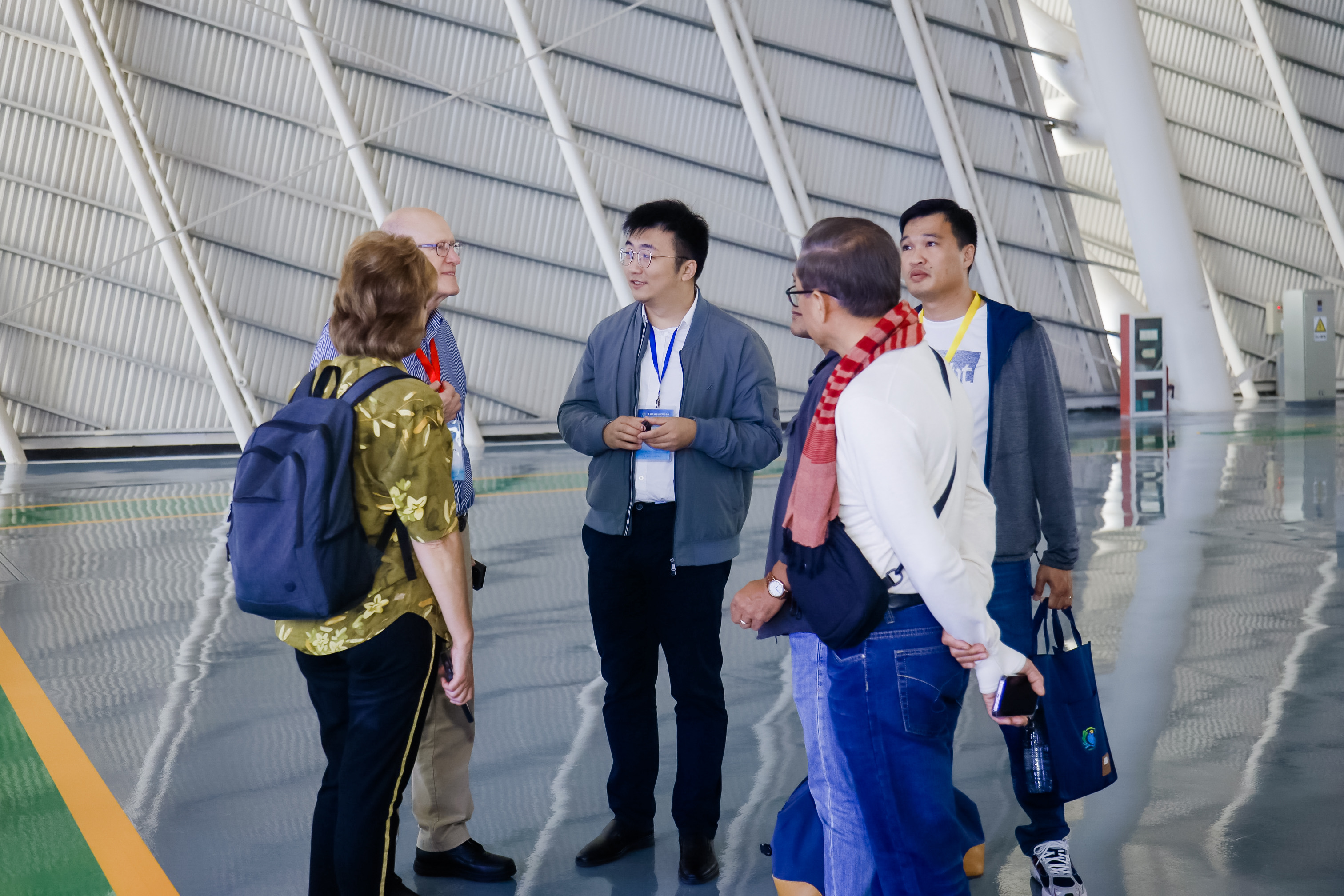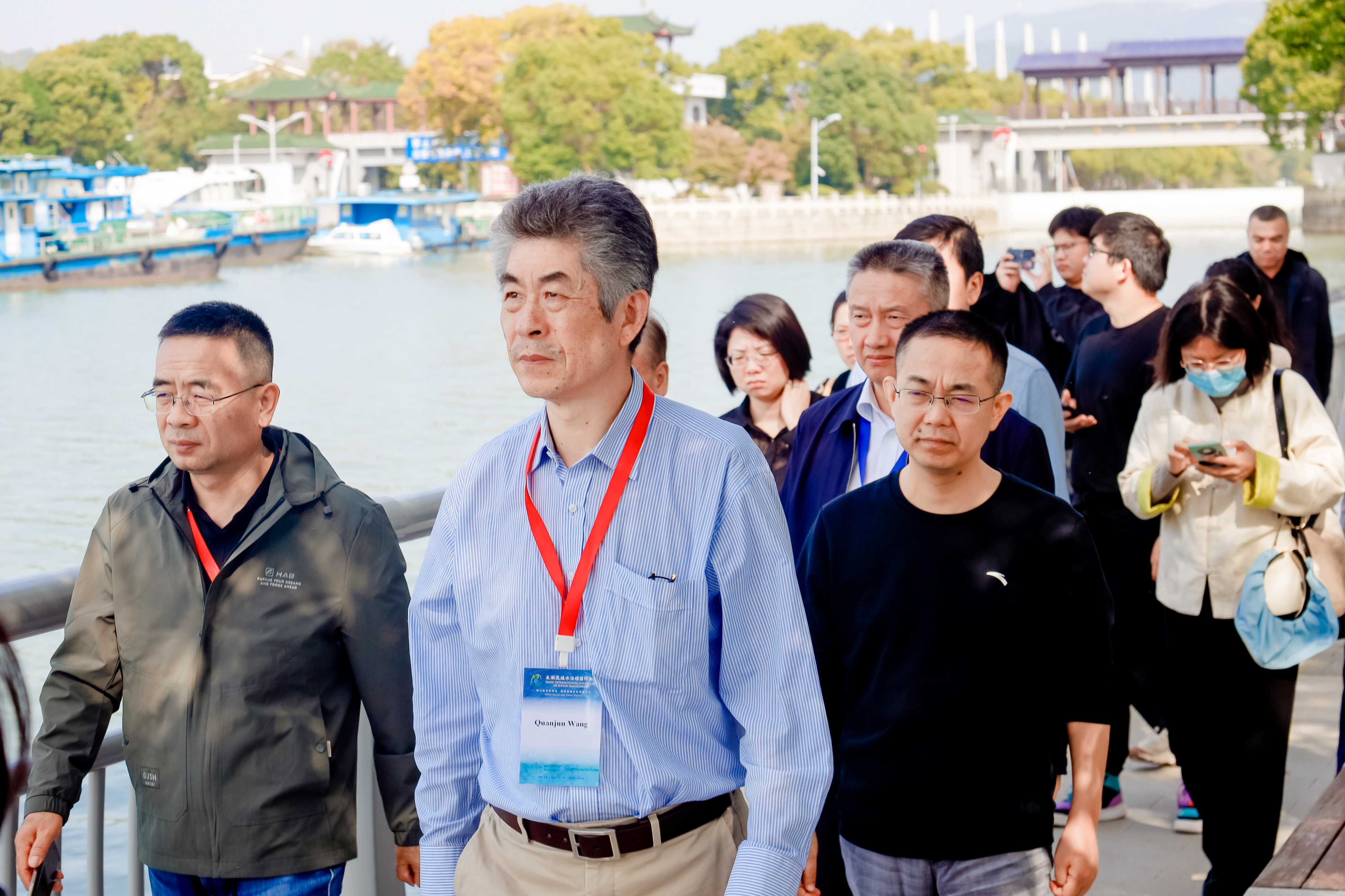 2024年11月14日,太湖流域水治理国际会议组织百余名学者专家开展现场技术考察。在我院河湖治理研究基地,考察团专家对水平比尺1:500、垂直比尺1:10的太湖全湖区风生流物理模型产生了极大兴趣,围绕浅水湖泊水动力基础理论、污染物迁移扩散、蓝藻水华漂移、底泥输移与冲淤及太湖水环境治理措施研究等,和我院学者深入交流探讨。
