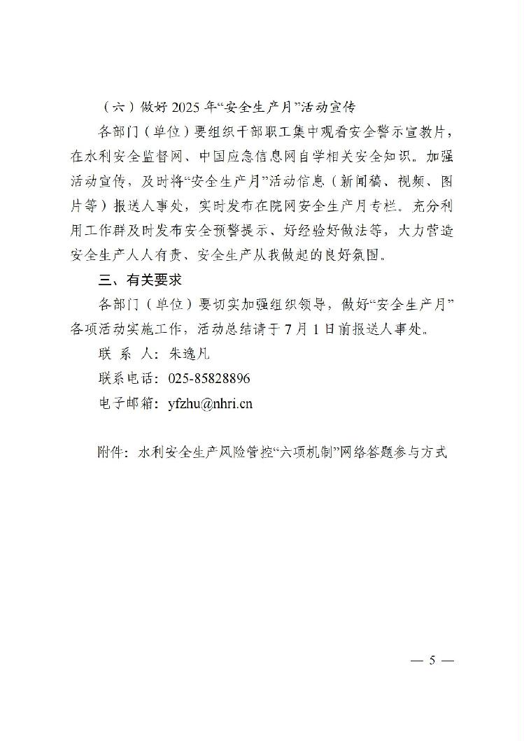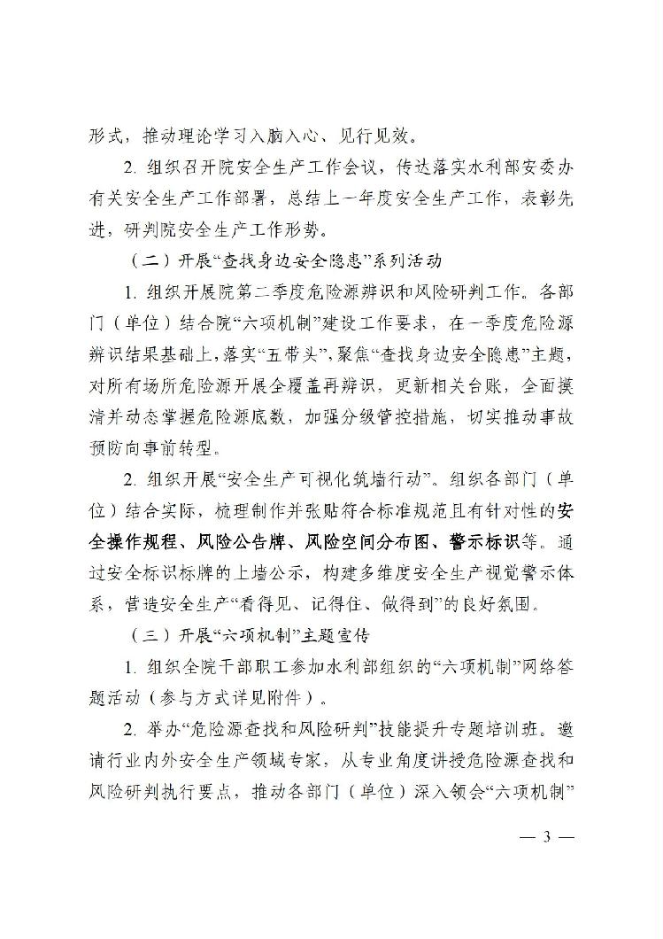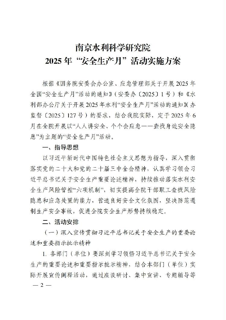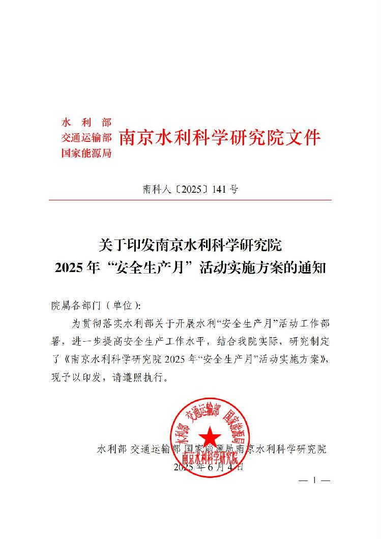 关于印发南京水利科学研究院2025年“安全生产月”活动实施方案的通知